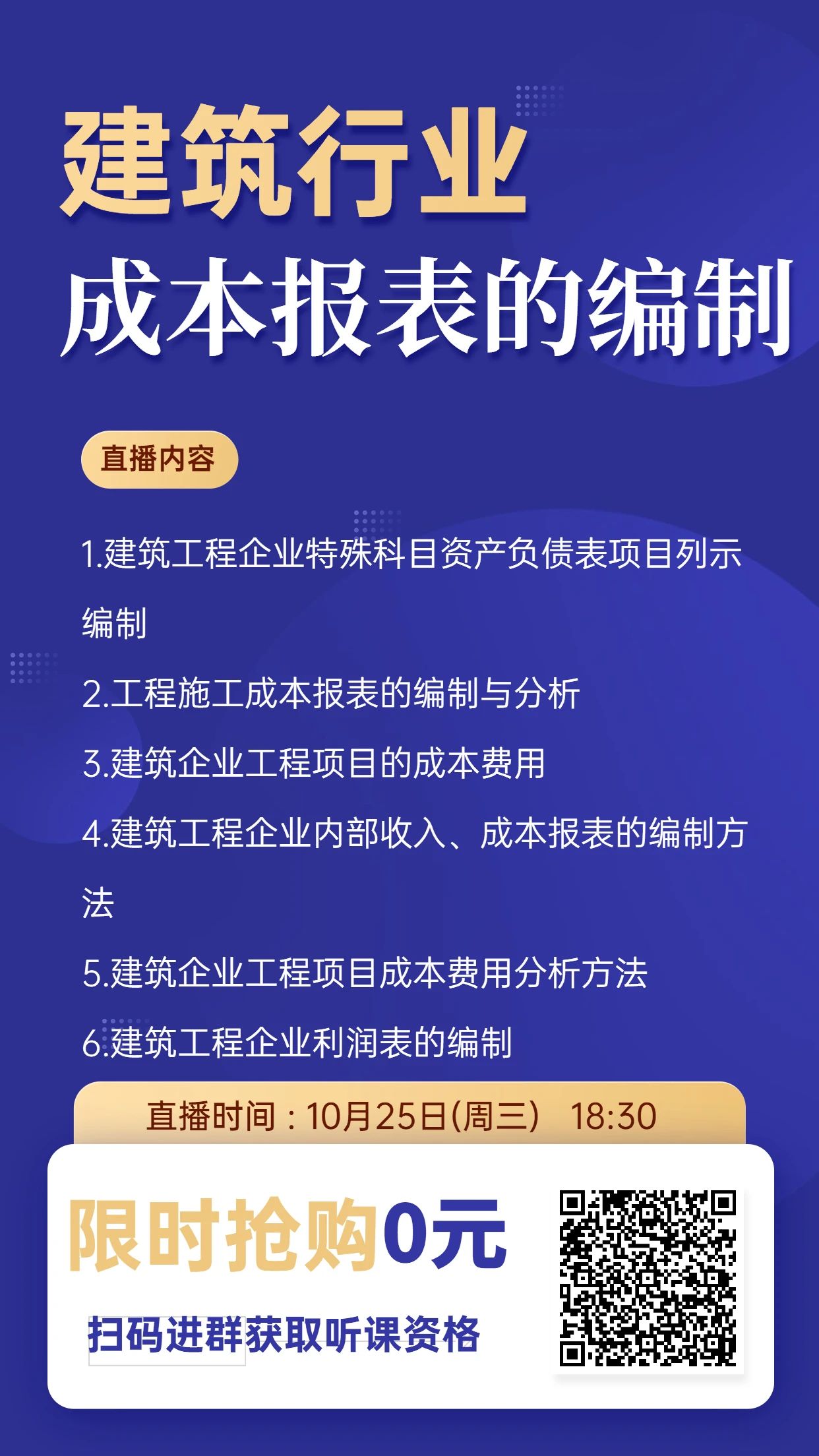 稅來稅往張老師將為大家?guī)砭€上直播課——《建筑業(yè)成本報表的編制與實操流程》